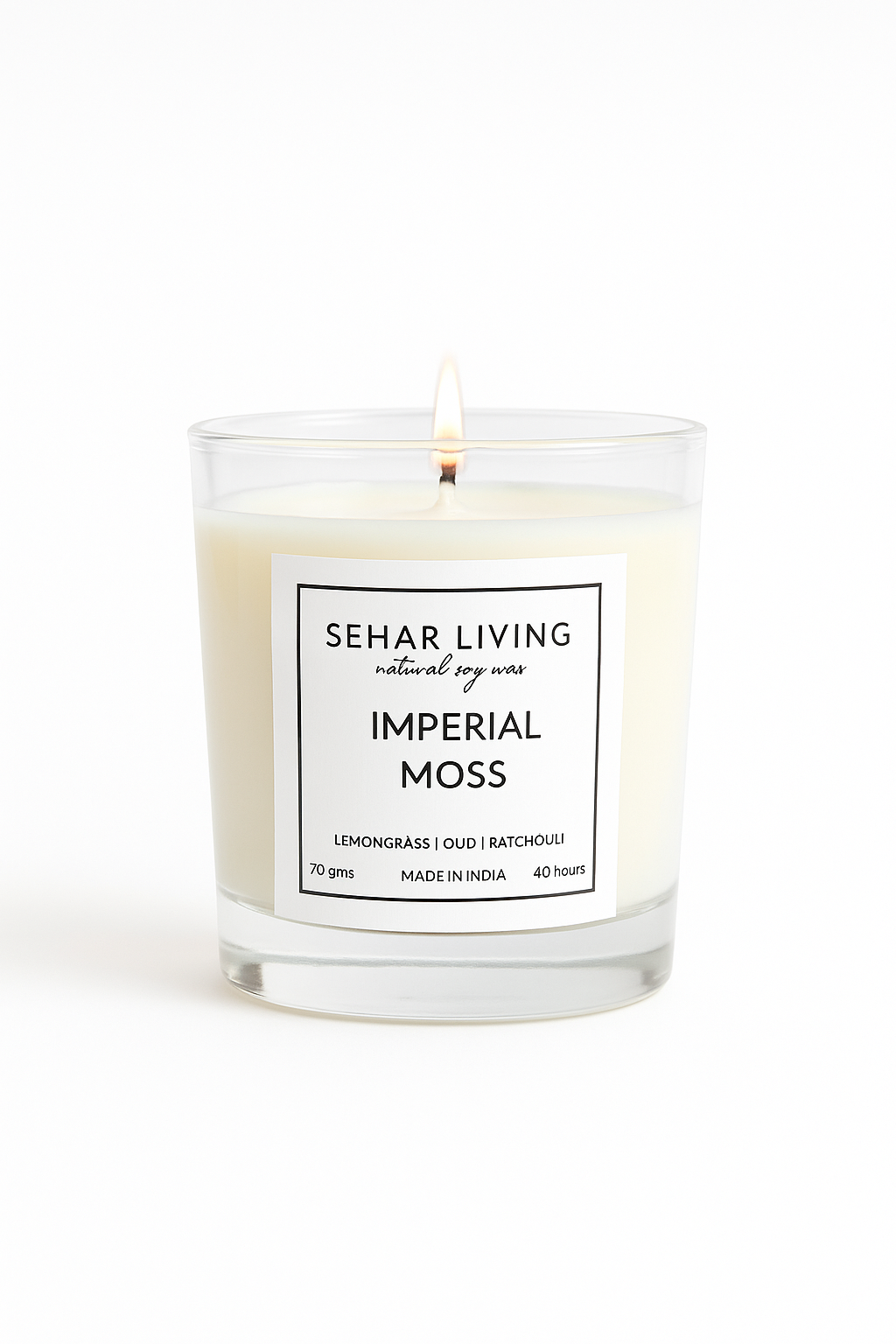Indulge in the luxurious calm of Imperial Moss – a handcrafted soy wax candle by Sehar Living that combines the grounding aroma of patchouli, the deep richness of oud, and the uplifting freshness of lemongrass. This elegant blend is designed to create a serene ambiance, making it perfect for unwinding after a long day, meditating, or adding a touch of sophistication to your space.